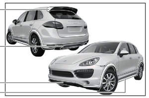 92A-2 Cayenne/S/Turbo (2015-2018) SportDesign Aero Package. Includes distinctive front apron paintable in exterior color with additional air intakes, rear apron, pronounced wheel arch extensions as well as a roof spoiler paintable in exterior color. The SportDesign package emphasizes the dynamic appearance and the sportier look. Comes primed and requires painting. Fits Cayenne, Cayenne S, and Cayenne Turbo. *Not for Cayenne Turbo S.