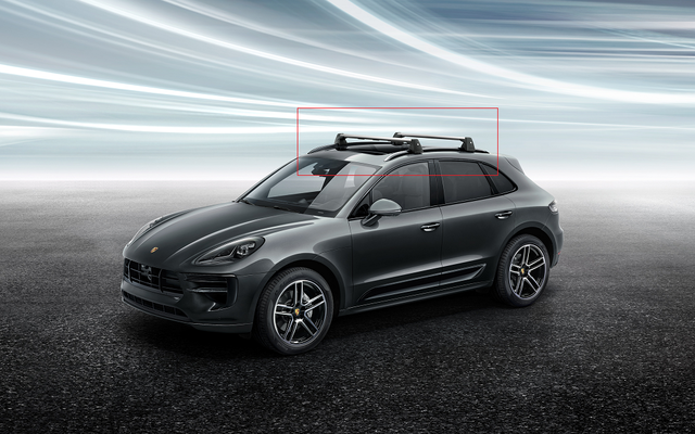 95B Macan (2014+) Roof Transport System Main Support. (roof rack kit) 2 lockable aluminum cross-bars for anchoring in the lateral roof channels. Suitable for all Porsche load-carrying devices (e.g., roof box, bike carrier, racing bike carrier, ski rack and snowboard holder - sold separately). Max. load-bearing capacity 75 kg. *Vehicle requires roof rails.