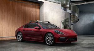 971 Panamera (2017+) Roof Transport System Main Support (Roof Rack Kit). 2 lockable bars made of aluminum. The maximum roof load is 165 lbs (75 kg). Suitable for Porsche Tequipment transportation modules. *For shorter wheelbase (0E1) or SportTurismo (wagon) vehicle only. **Not for Executive models (longer wheelbase - 0E2)