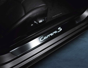 997 911 (2005-2012) Door Entry Guards in Stainless Steel, Illuminated. Door entry guards in stainless steel with illuminated model logo. Set of 2.
